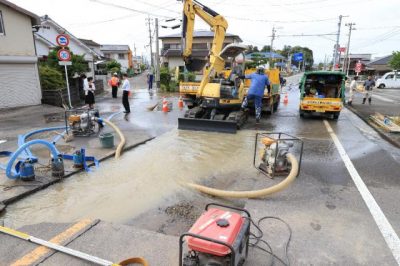 配水管破損で通行止め 宮崎市の県道、亀裂20メートル