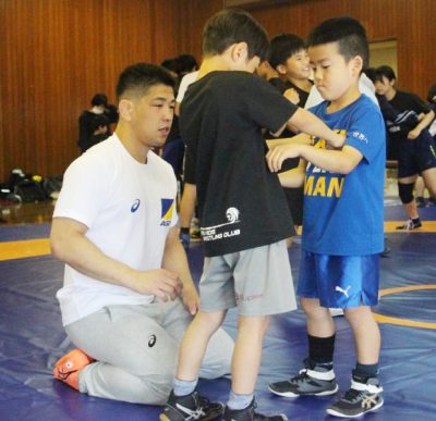東京五輪レスリング「銅」屋比久 宮崎市で基本を指導