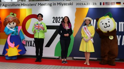 2023/04/20トピックnews先進7カ国首脳会議(G7サミット)宮崎農相会合が22日に開幕するのを前に20日、参加する国や国際機関の代表団の本県入りが始まった。第1陣をボランティアサポーターらが笑顔で出迎えた。 宮崎市・宮崎空港では、英国と国際農業開発基金(I...