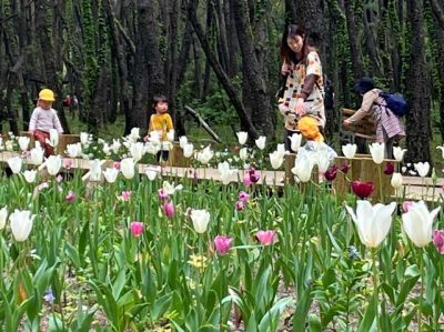 2023/04/14トピックnews宮崎市山崎町の国際海浜エントランスプラザの英国式庭園北側にある「木漏れ陽のガーデン」でチューリップが見頃を迎えている。家族連れら多くの市民が訪れ、春の訪れを感じながら散策を楽しんでいる。 約3千平方メートルの敷地内に球根や多年草約...