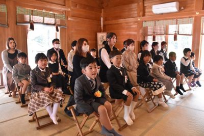 楽しい小学校生活に 都農神社で新1年生と保護者ら「勧学祭」
