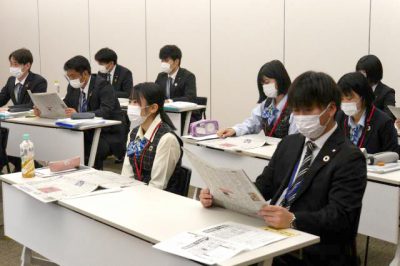 2023/04/07経済一般高鍋信用金庫(板垣衛理事長)は6日、宮崎日日新聞社のNIB(ビジネスに新聞を)出前講座を活用した研修を高鍋町の本店で開いた。新入職員21人が参加。当日の紙面を使いながら、効果的な読み方や日常業務に生かす方法などを学んだ。 NIB担...