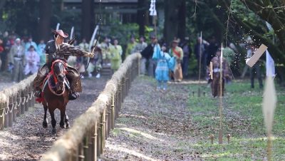 五穀豊穣祈り的射抜く 宮崎神宮で流鏑馬