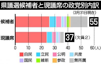 県議選告示 最多55人立候補 無投票3選挙区 9日投開票