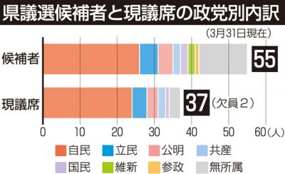 県議選告示55人立候補 9日投開票、11選挙区で選挙戦へ