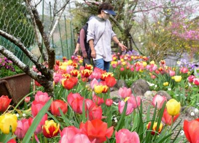 2023/03/28トピックnews日向市東郷町坪谷の三浦定(74)、京子さん(70)宅で色とりどりのチューリップ約9千本が見ごろを迎えている。パンジーやビオラなどの草花、ハナモモやツバキなどの木の花も咲き誇り、見物客の目を楽しませている。 三浦さん夫妻は20年以上...