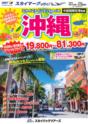 【新商品/中部国際空港発着】スカイマークで行く!「スカイステイションSpecial 沖縄」を販売開始!30日前まで受付限定のスペシャル価格!60日前予約でさらにお得♪事前座席指定ok!