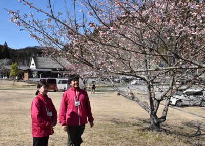 2023/03/02地域の話題日南市酒谷の道の駅「酒谷」敷地内に、今年も城ケ崎桜が咲き始めた。淡いピンク色の花に来場者たちが見入っている。10日ごろまでに満開を迎え、見頃は20日前後までという。 城ケ崎桜は静岡県の伊豆地方に多く咲いている。18年前に同駅を運営...