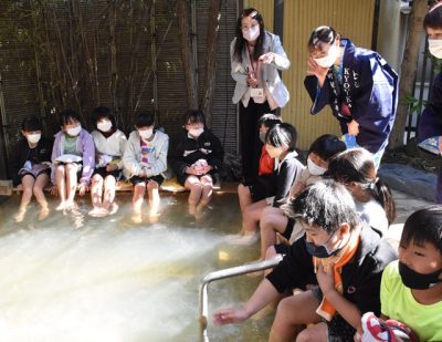 温泉女将が「温楽授業」真幸小児童ら足湯体験も えびの