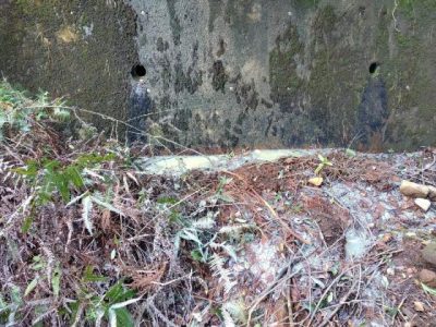 日向の鳥フル埋却地付近で白濁水 防疫用消石灰染み出たか