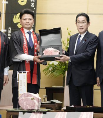 宮崎牛 首相に贈呈 全共「日本一」で生産者