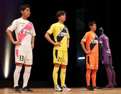 サッカーJ3テゲバ 新ユニホーム披露 宮崎市で新体制発表会