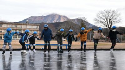 2023/01/26きょうの出来事冷え込みが続く26日、高千穂峰の麓にある都城市・吉之元小(新島浩光校長、13人)校庭に1日限りのアイススケートリンクが登場、全児童がスケートを楽しんだ。 保護者らが30年以上続ける恒例行事で前日午後11時から作業を開始。ローラース...