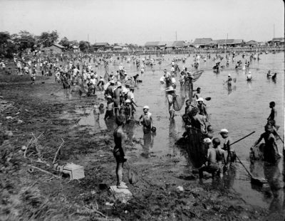 【懐かしの昭和】宮崎市・弦月湖の池干し(昭和26年)