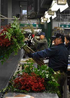 2022/12/18トピックnewsセンリョウやナンテンなど正月用飾りに使われる花木を集めた「企画市」は17日、宮崎市新別府町の市公設地方卸売市場花き棟であった。鹿児島や本県など九州産を中心に約9万本が競りにかけられ、競り人の威勢の良いかけ声が響いた。 同市は毎年末...
