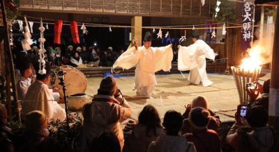 2022/12/14トピックnews国重要無形民俗文化財に指定されている西都市銀鏡の銀鏡神楽が14日、銀鏡神社(上米良久通宮司)の大祭で奉納された。同地区を含む同市東米良地域は、9月の台風14号で道路崩落や集落孤立など大きな被害を受け、荘厳な舞を前に地域住民らは復興への思い...