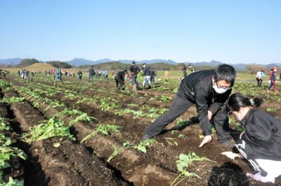 春の風景向けて準備 西都原で菜の花30万本市民ら植栽