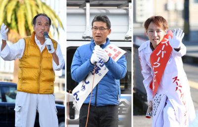 知事選告示後 初の週末 3候補、懸命の訴え