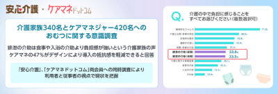 【介護家族340名とケアマネジャー420名へのおむつに関する意識調査】排泄の介助は食事や入浴の介助より負担感が強いという介護家族の声。ケアマネの47%がデザインにより導入の抵抗感を軽減できると回答