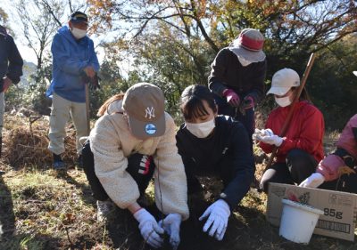 土呂久鉱山跡を憩いの広場に 宮崎国際大生が植樹