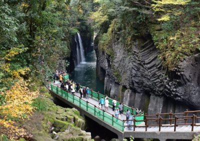 2022/11/19県内一般ニュース台風14号の被害を受け、通行禁止となっていた高千穂町・高千穂峡の遊歩道の一部区間が18日、約2カ月ぶりに開放された。紅葉シーズンとあって多くの観光客が訪れ、散策を楽しんでいた。 開放されたのは、真名井の滝近くの「滝見台」約20メートル...