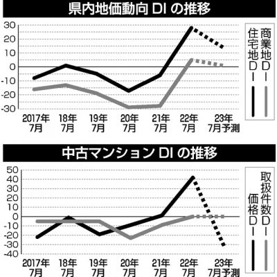 2022/10/28経済一般住宅地、中古マンション好調 県内の住宅、商業地の不動産市況が改善している。新型コロナウイルス感染拡大に伴う行動制限が緩和され人流が回復したことなどが要因。中古マンションも引き続き値上がり傾向にある。一方、来年については低めの予測が目...