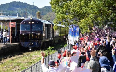 「ななつ星」吉都線初運行 沿線住民歓迎