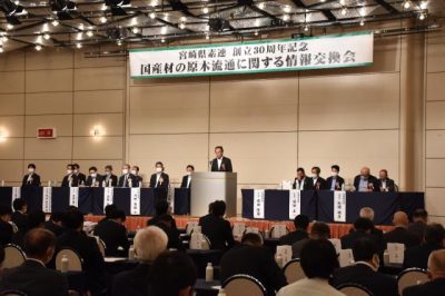 2022/10/21県内一般ニュース国産材の原木流通に関する情報交換会(県造林素材生産事業協同組合連合会主催)は20日、宮崎市のMRTmiccであった。県内の製材業者らでつくる同連合会の創立30周年を記念して開催。会員のほか、県や各市町村の担当者ら計約150人が出席し、林業...