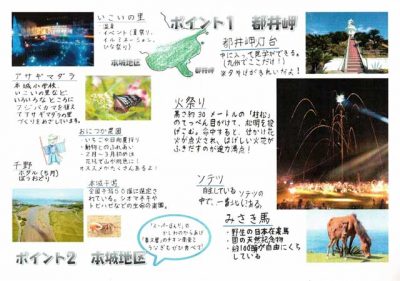 2025/10/26地域の話題串間市・本城小(上森義郎校長、23人)の3、4年生6人は、市内の観光地や自然といった地域の魅力を紹介する観光リーフレットを作った。初めての試みで、児童たちによる直筆の案内文や手描きの地図を掲載。子どもたちの地元愛がこもった一枚が、串間のP...