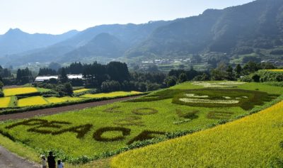 田んぼアートで世界平和願う 高千穂町・栃又棚田