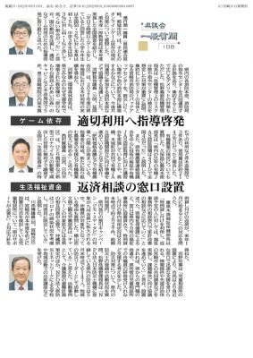 2022/09/10紙面から/1日/ゲーム依存/適切利用へ指導啓発/生活福祉資金/返済相談の窓口設置 満行潤一議員(県民連合宮崎、都城市区)は、子どものオンラインゲーム依存の現状と対策について質問した。 黒木淳一郎教育長は本年度実施した全国調査を紹介し、「...