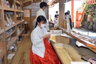 鵜戸中生が職場体験 鵜戸神宮で巫女さんに