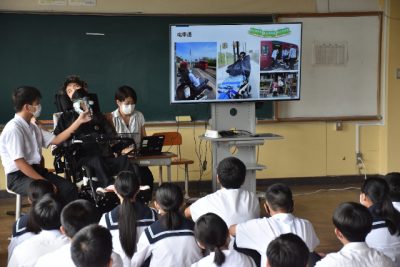 2022/09/06地域の話題川南町川南の今井心子さん(48)と、重度の障害がある長男総二郎さん(20)の講演は2日、高鍋町の高鍋西中(黒木倫徳校長、238人)であった。2人は3年生74人に日常生活やこれからの夢などを語った。 3年生は10月の文化祭で持続可能...