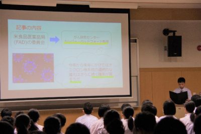 記事読み、課題を深掘り 鵬翔中でNIE学習発表会