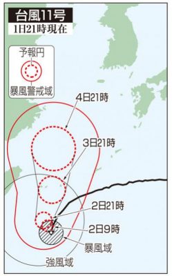 宮崎県3日大雨恐れ 台風11号沖縄南から北上へ
