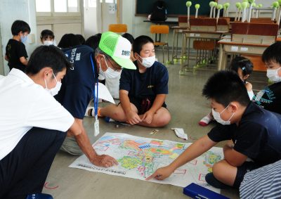 通学路の避難所確認 門川・草川小で防災図上訓練