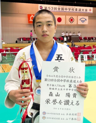 柔道男子73キロ級 森山(五十市)3位 全国中学大会