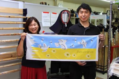 ウクライナの剣士を手ぬぐいで支援 日本武道宮崎(宮崎市)が販売