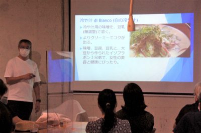 2022/08/23トピックnews本県の郷土料理「冷や汁」の歴史や魅力を学ぶイベントが、宮崎市橘通東3丁目の複合施設であった。会社社長で冷や汁研究家の日高大介さん(60)=東京都=が日頃の研究成果を発表し、参加者22人にオリジナルレシピの冷や汁を提供した。 日高さ...