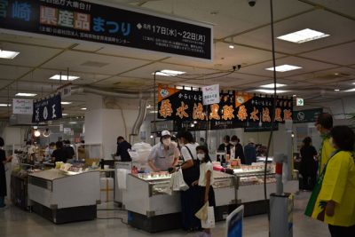 2022/08/18経済一般県内の食と工芸品を集めた「うめもんじゃ宮崎県産品まつり」(県物産貿易振興センター主催)は17日、宮崎市の宮崎山形屋新館5階大催場で始まった=写真。22日まで。 食品関係は27社。宮崎市の昨年の購入額(1世帯当たり)が日本一となり、...