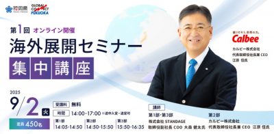 「海外展開セミナー第1回集中講座」を9/2(火)に開催! 基調講演にカルビー(株)江原社長が登壇!