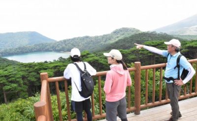 2022/08/12県内一般ニュース「山の日」の11日、えびの市のえびの高原で山に親しむイベント(同市、同市観光協会主催)があった。家族連れらが参加したトレッキングツアーでは火口湖などを巡り、霧島山の雄大な眺望を楽しんだ。 ツアーは「池巡りコース」と「えびの岳コース...