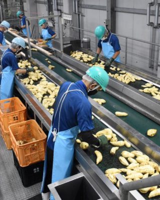 2022/08/10県内一般ニュース都城市の霧島酒造(江夏順行社長)で、本年度の芋焼酎仕込みが本格化している。工場には収穫された生甘藷(かんしょ)の「黄金千貫(こがねせんがん)」が次々と運び込まれている。 市内にある5工場では、県内や鹿児島県産の甘藷を使い、芋焼酎を...