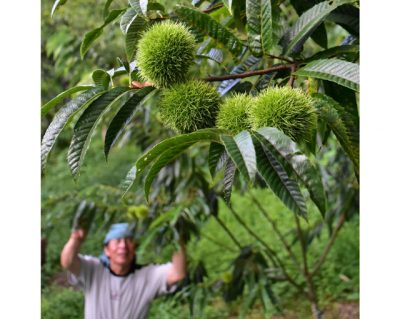 立秋「秋」の気配かすかに 小林市のクリ園、青々とした実 日増しに大きく