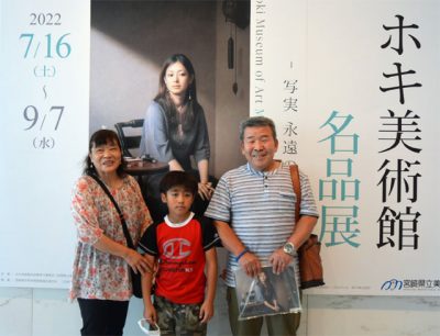 2022/08/05トピックnews宮崎市の県立美術館で開かれている特別展「ホキ美術館名品展―写実 永遠の存在感―」(宮崎日日新聞社など実行委主催、宮崎太陽銀行特別協賛)の来場者が5日、1万人を突破し、記念セレモニーがあった。 1万人目は延岡市富美山町の小澤隆義さん...