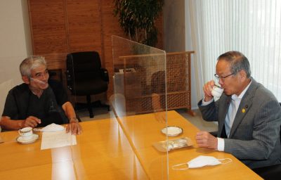日向市長へカモミールティーを贈呈 東郷まちづくり協議会 特産化目指す