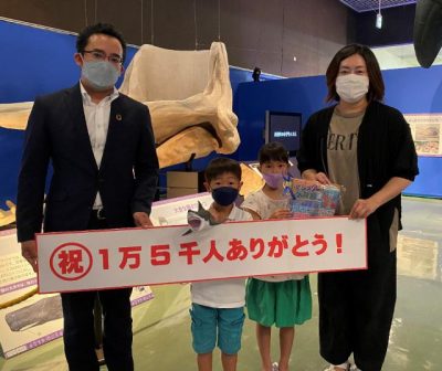 2022/07/23県内一般ニュース宮崎市の県総合博物館で開かれている特別展「モンスター水族館~深海魚とサメのひみつ」(宮崎日日新聞社など実行委主催)の来場者が22日、1万5千人を突破した。 1万5千人目となった同市・宮大付属小2年の江口夏子(なこ)さん(7)に、同...