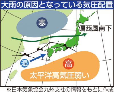 2022/07/19トピックnews本県を含む九州南部は先週から今週にかけて、局地的な豪雨をもたらす「線状降水帯」の予報が相次ぐ。九州南部は6月27日に梅雨明けしたとみられるが、太平洋高気圧の勢力が弱く、梅雨末期のような気圧配置になっていることが要因。今週半ばごろまで大雨に...