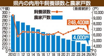 2025/08/26トピックnews29万7808頭の牛や豚が犠牲となった2010年の口蹄疫終息から、27日で15年になった。県内の肉用牛飼養頭数は同年4月の発生直前から15%減少し、今年2月時点で24万8400頭。農家の戸数も4千戸と、当時の半数以下となった。高齢化や子牛...