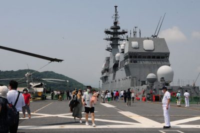 ヘリ昇降エレベーターの大きさに驚き 日向で護衛艦「ひゅうが」一般公開
